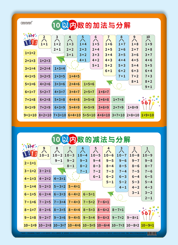 10以内数的加法与分解表(鲜艳)